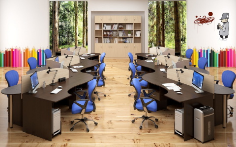 SIMPLE предлагает широкий выбор элементов для организации рабочих зон: компьютерные столы, тумбы, шкафы и другие компоненты, которые помогут создать комфортное пространство для каждого сотрудника. Это универсальная офисная мебель, которая подойдёт как для малого офиса, так и для крупной компании.